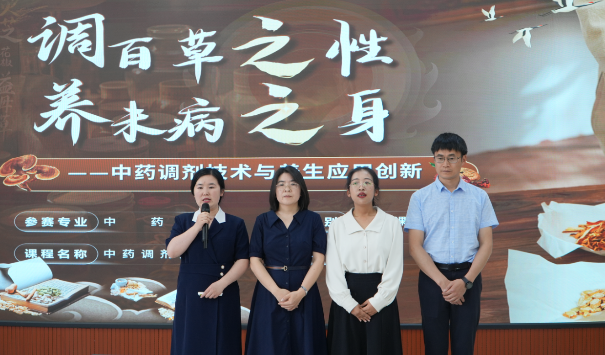 徐率、杨燕、谭淑文、杨小黎四位教师合作的《中药调剂与养生应用》课程荣获专业课程一组三等奖。该课程巧妙融合传统中药文化与现代养生理念,通过互动式教学、实践操作等方式,激发了学生的学习兴趣,培养了学生的创新思维与跨学科应用能力。