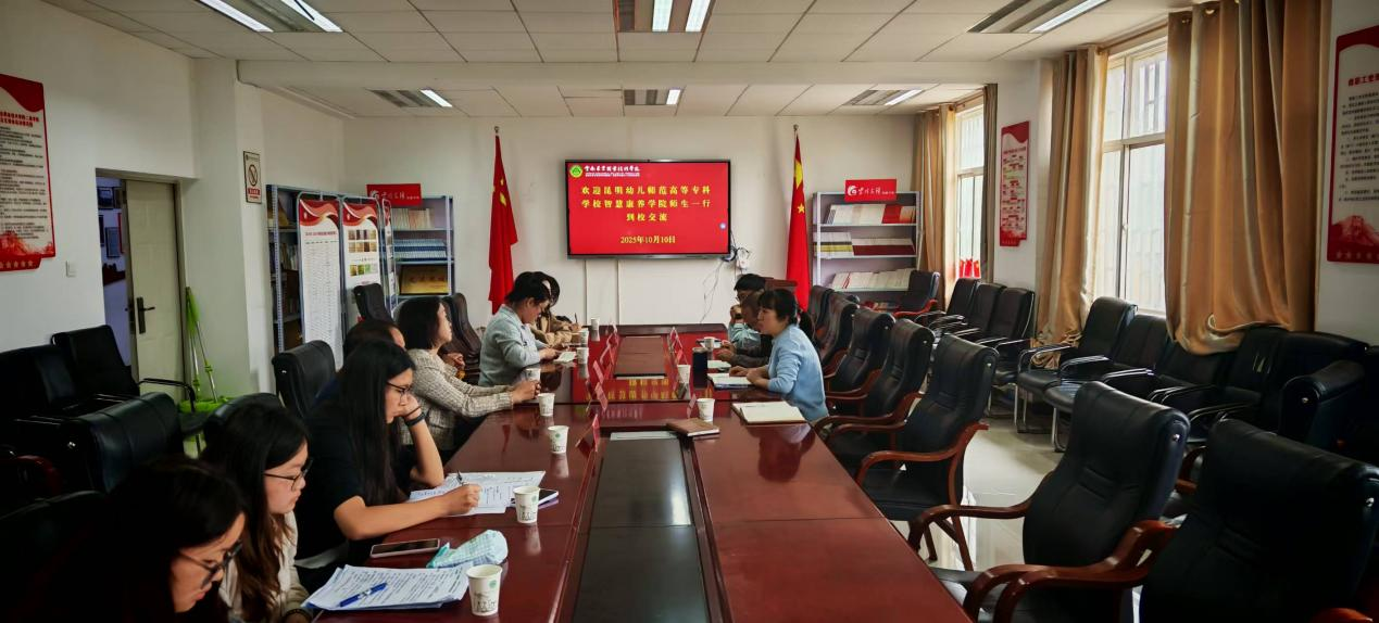 2025年10月10日,昆明幼儿师范高等专科学校智慧康养学院代表团莅临我院交流。期间,双方聚集高技能人才培养,围绕专业建设、教学管理、学生管理、实训室建设和技能大赛等开展交流。随后参观了实训基地。
