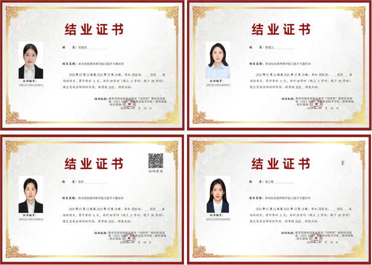 为深化职业教育教学改革,提升教师教学创新能力和竞赛水平,2025年7月13日至18日,我院选派张艳青、陈德云、徐率、杨小黎4名教师赴金华职业技术大学参加“2025年职业院校教师教学能力提升专题培训”。