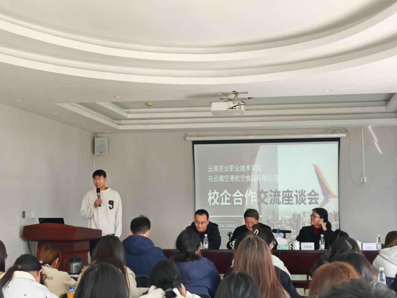 随后,企业负责人详细介绍了公司的发展历程、产业规模、核心技术优势及航空食品行业的发展前景,重点结合行业岗位需求,解读了企业招聘岗位设置、岗位职责要求及职业发展路径。其分享内容与食品质量与安全专业 “省双高” 建设中 “培养适应产业需求的高素质技术技能人才” 的定位高度契合,让学生对航空食品行业的人才标准有了清晰认知,也为学院优化人才培养方案、调整课程内容提供了产业端的实际参考。