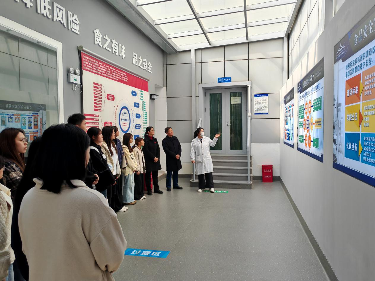 座谈结束后,在企业工作人员的引导下,师生们有序参观了航空食品生产车间、质量检测中心、仓储物流区域等核心场所。通过实地观摩标准化的生产流程、智能化的加工设备、严格的卫生管控措施,让学生们直观感受到食品质量安全在航空食品生产中的核心地位,深刻理解了专业知识在实际工作中的应用场景 —— 从原料检测到成品把控,每一个环节都与课堂所学的 “食品质量控制”“食品安全管理” 等课程内容紧密关联。这种沉浸式体验,不仅巩固了学生专业学习的目标与方向,更助力学院在 “省双高” 建设中进一步完善 “实践教学体系”,提升人才培养质量。