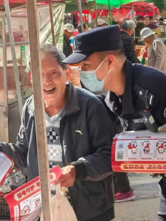 临近年关的两周,志愿者们手持以安全用火、谨慎用电为主题的宣传单,跟随民警深入集市,向群众耐心讲解日常用火用电注意事项,帮助大家增强安全防范意识,从源头上减少安全事故的发生。民警不厌其烦地讲解了一遍又一遍,志愿者们也跟着认真学、用心记。